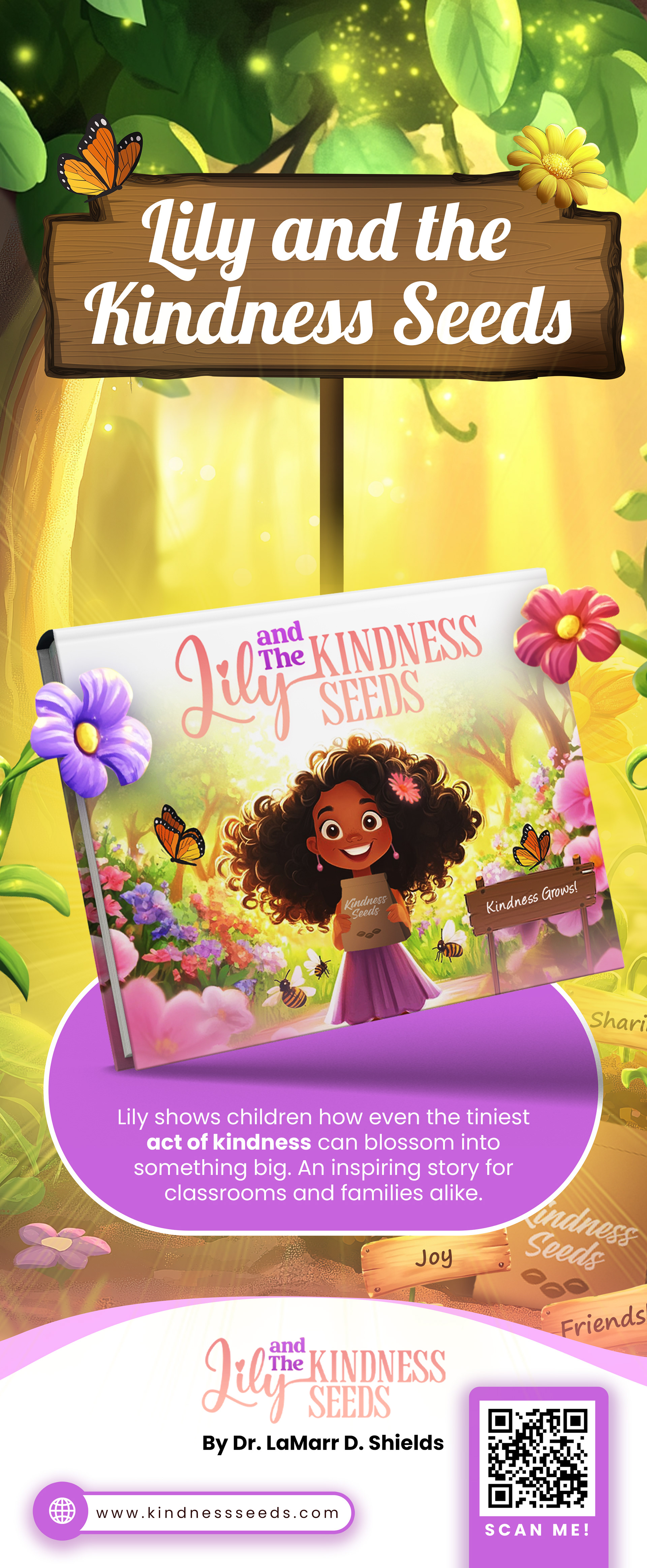 Poster Design for a children's book launch event by Dr. LaMarr D. Shields. "Lily & the Kindness Seeds" is all about spreading happiness and kindness growing the seeds of goodness - "Lucas and the Lighting Storm Inside" is a book which teaches children how to deal with anxiety and stress by believing in their selvesĀ