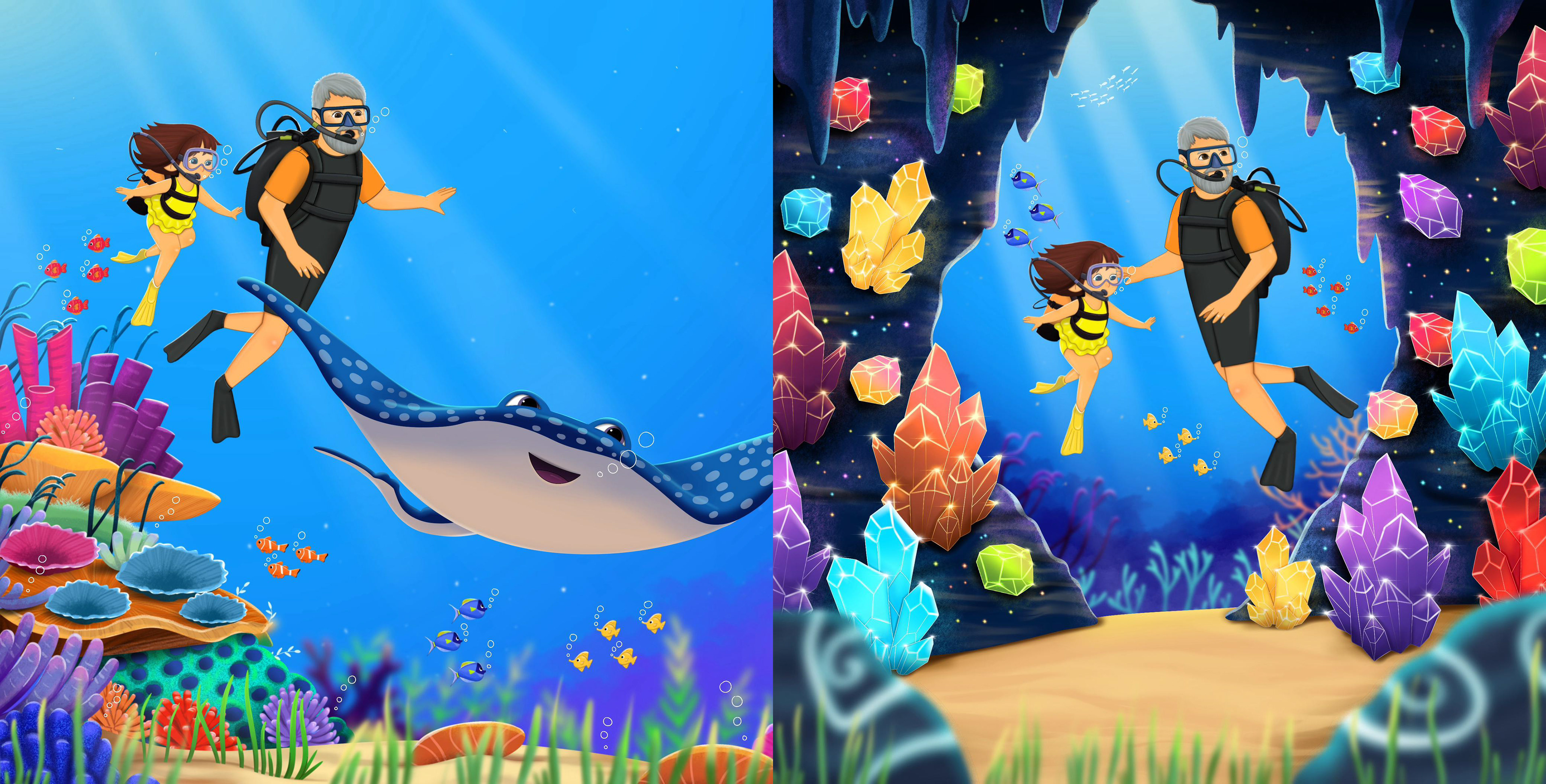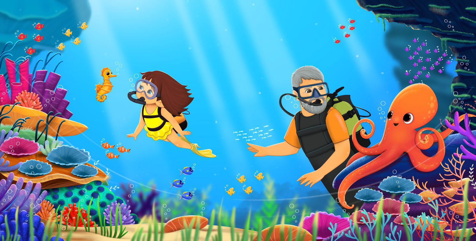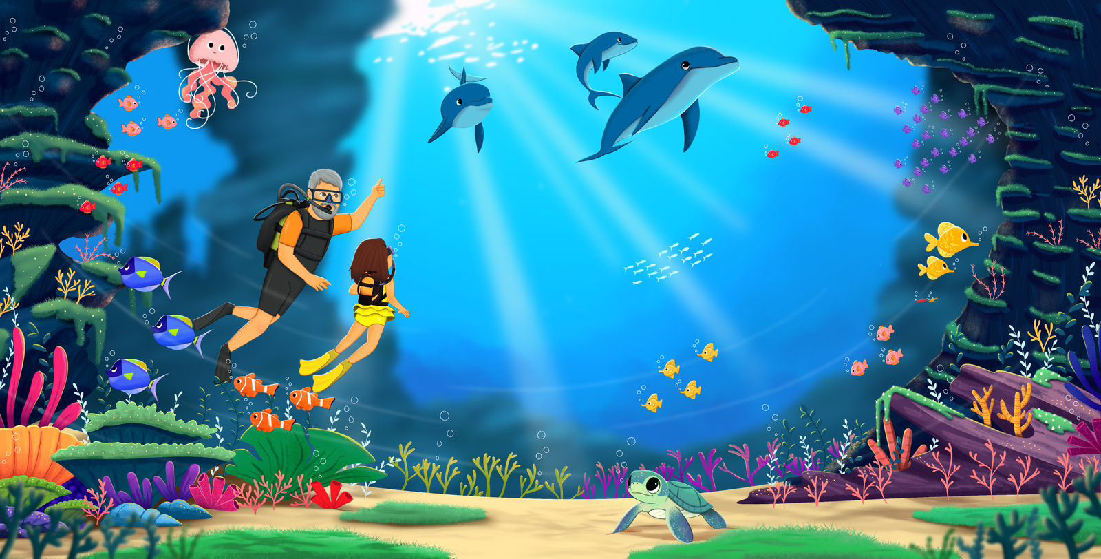 Scuba Diving Marine Book Illustration